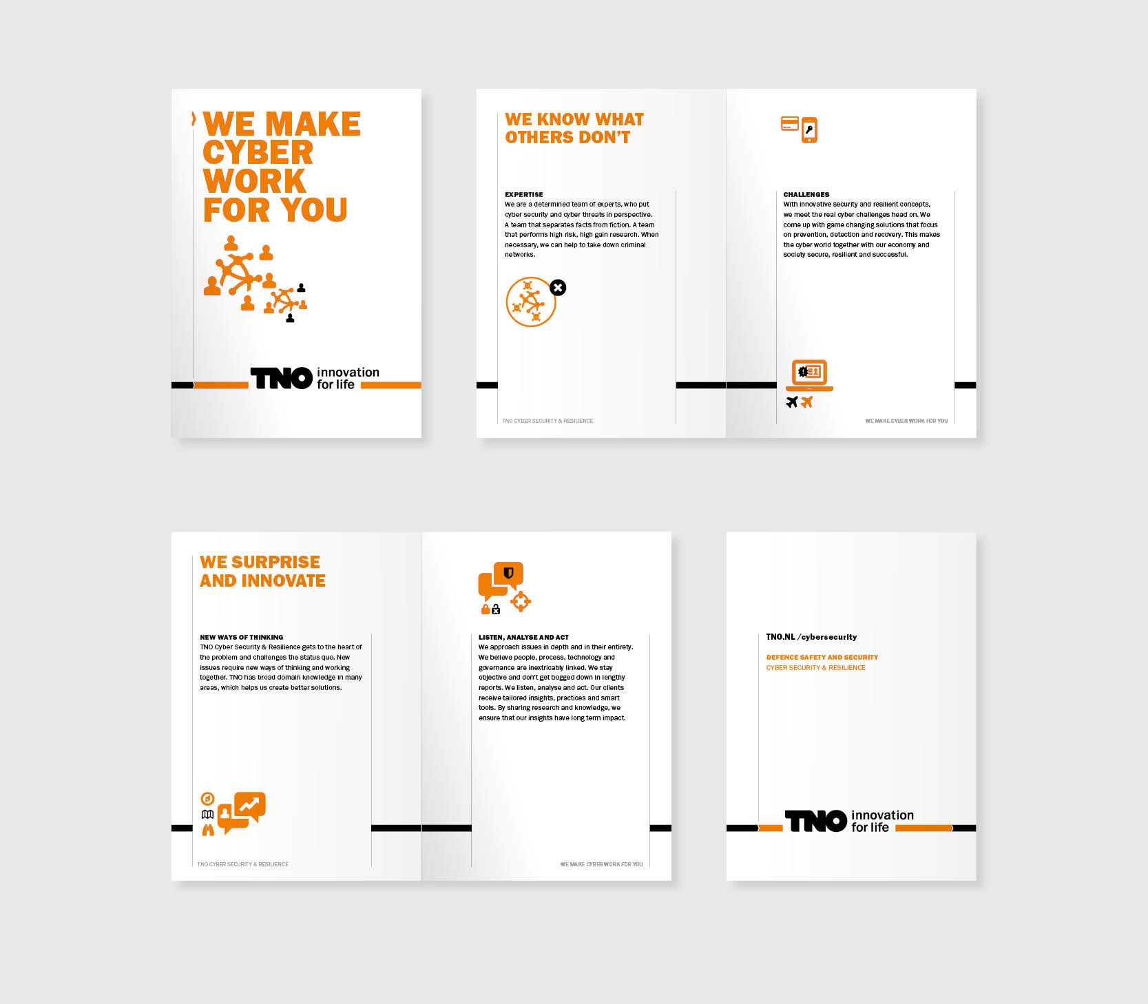 Visual language using standard icons to create 'hyrogliphics' for TNO Cyber Security & Resilience.